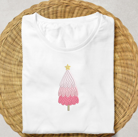 Pink Christmas Tree Embroidery Design