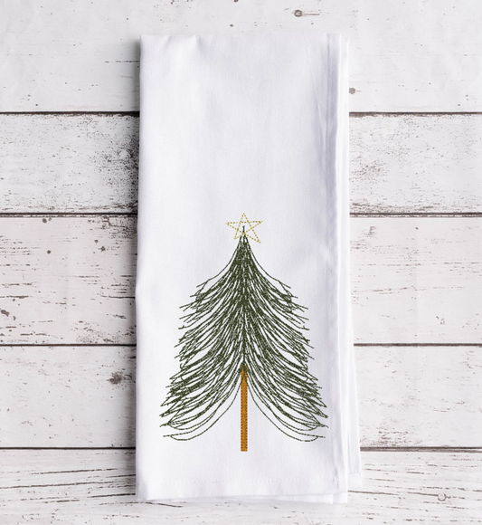 Vintage Christmas Tree with Ribbon Embroidery Design